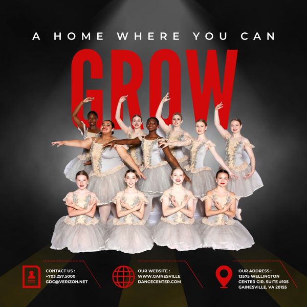 "A Great Place To Grow Up" was the tagline chosen to encapsulate the enduring bond that dancers forge with GDC. This phrase was designed to appeal to parents seeking a stable and nurturing environment for their children, as well as to dancers who grow from infancy to graduation within the studio.