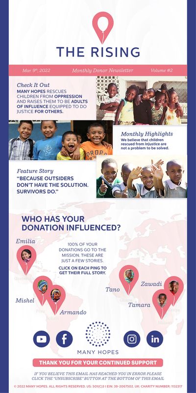 Interactive monthly newsletter design and branding. A sub brand of Many Hopes.